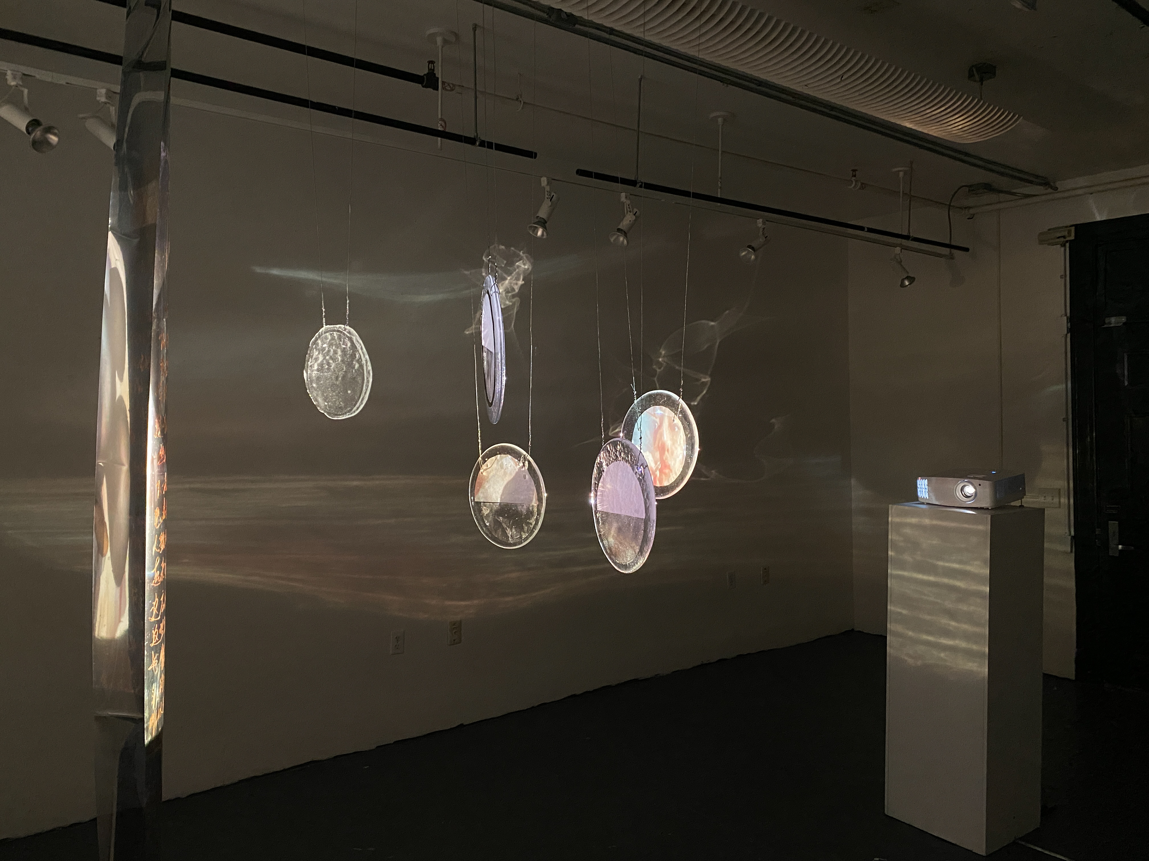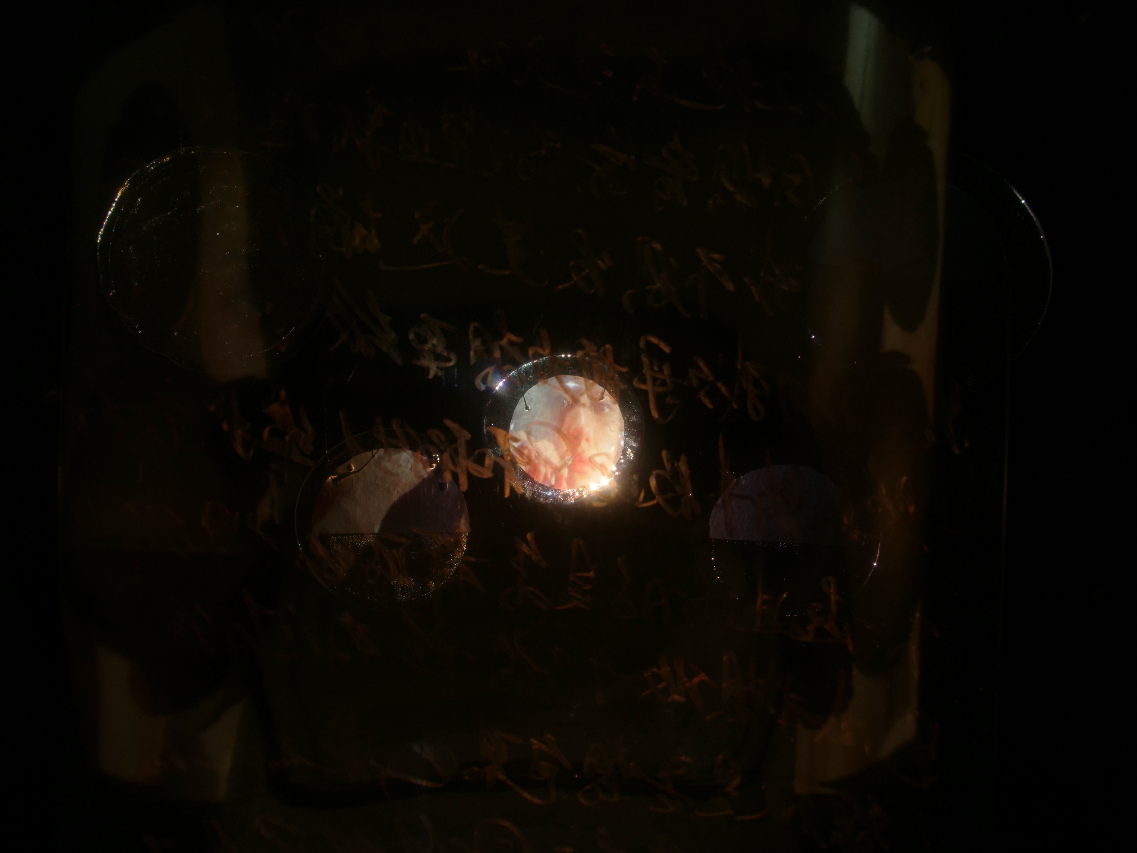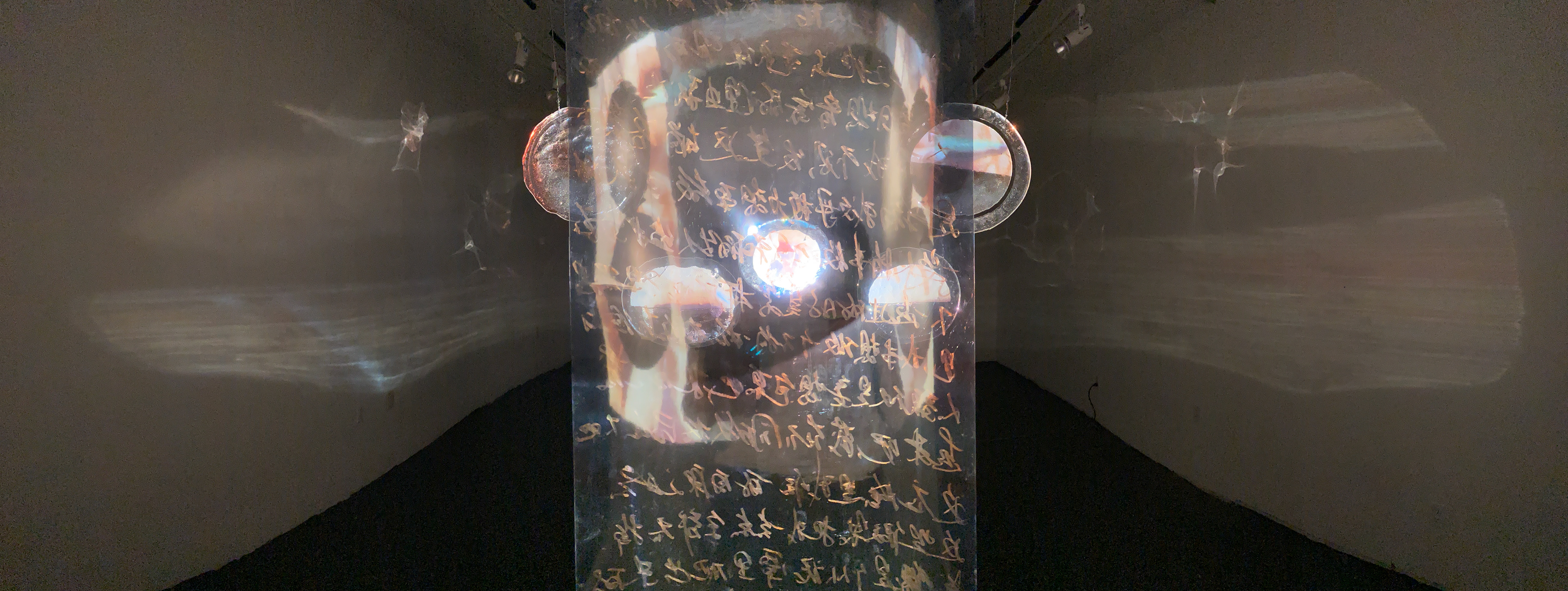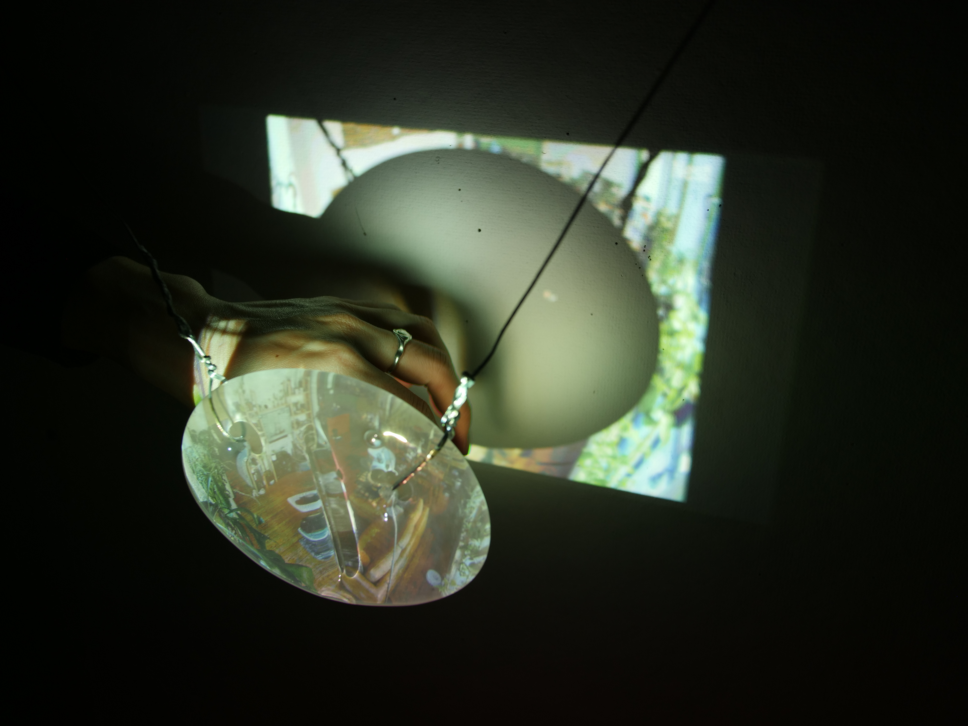 The installation concept revolves around a unique fusion of 16mm double exposure film techniques with real-time surveillance capturing everyday domestic scenes. The projected images from a film projector are displayed on various glass surfaces, enriched by reflections and visual distortions that play with perception and narrative depth. The piece's central theme—ingrained lessons on the pragmatics of human behavior taught by parents— emphasizes the necessity of tact and adaptability in human interactions.